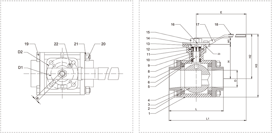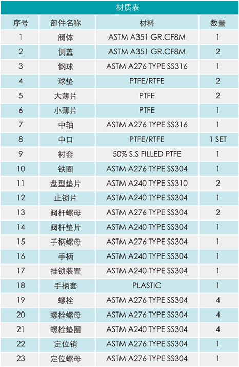 結(jié)構(gòu): 閥桿防爆出裝置設(shè)計(jì) 閥體設(shè)計(jì)合理便于快速拆裝 頂端平臺(tái)連接符合ISO5211標(biāo)準(zhǔn) 容易實(shí)現(xiàn)自動(dòng)化控制和遠(yuǎn)距離控制 通道平整光滑,不易沉積介質(zhì),易于清洗 優(yōu)點(diǎn): 流體阻力小 密封性能好 閥桿密封可靠 開關(guān)迅速,方便 全面符合最新國際規(guī)范 技術(shù)參數(shù): 閥類: 金屬球閥 閥體材質(zhì): 1.4408,CF3M 工作壓力: 0-63 bar 最高工作溫度℃: 180 ° C 通徑范圍DN : 8-100